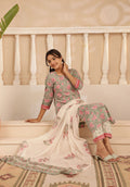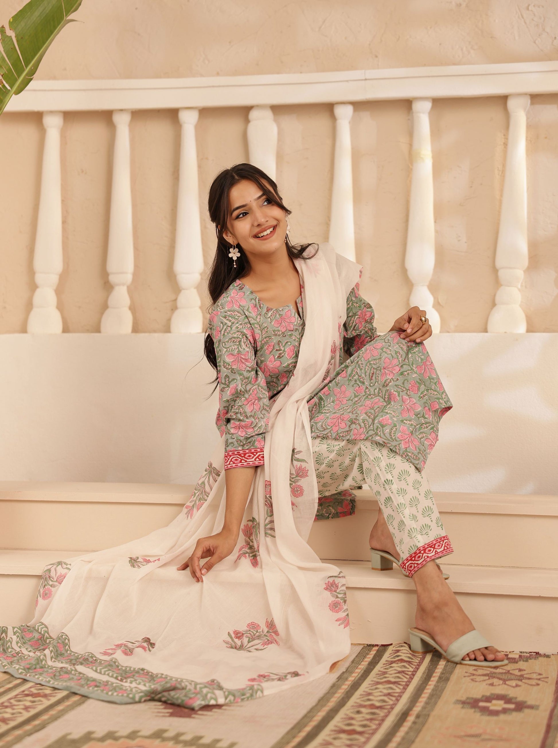 - Piece : 3 Piece Hand Printed Straight Kurta & Pant