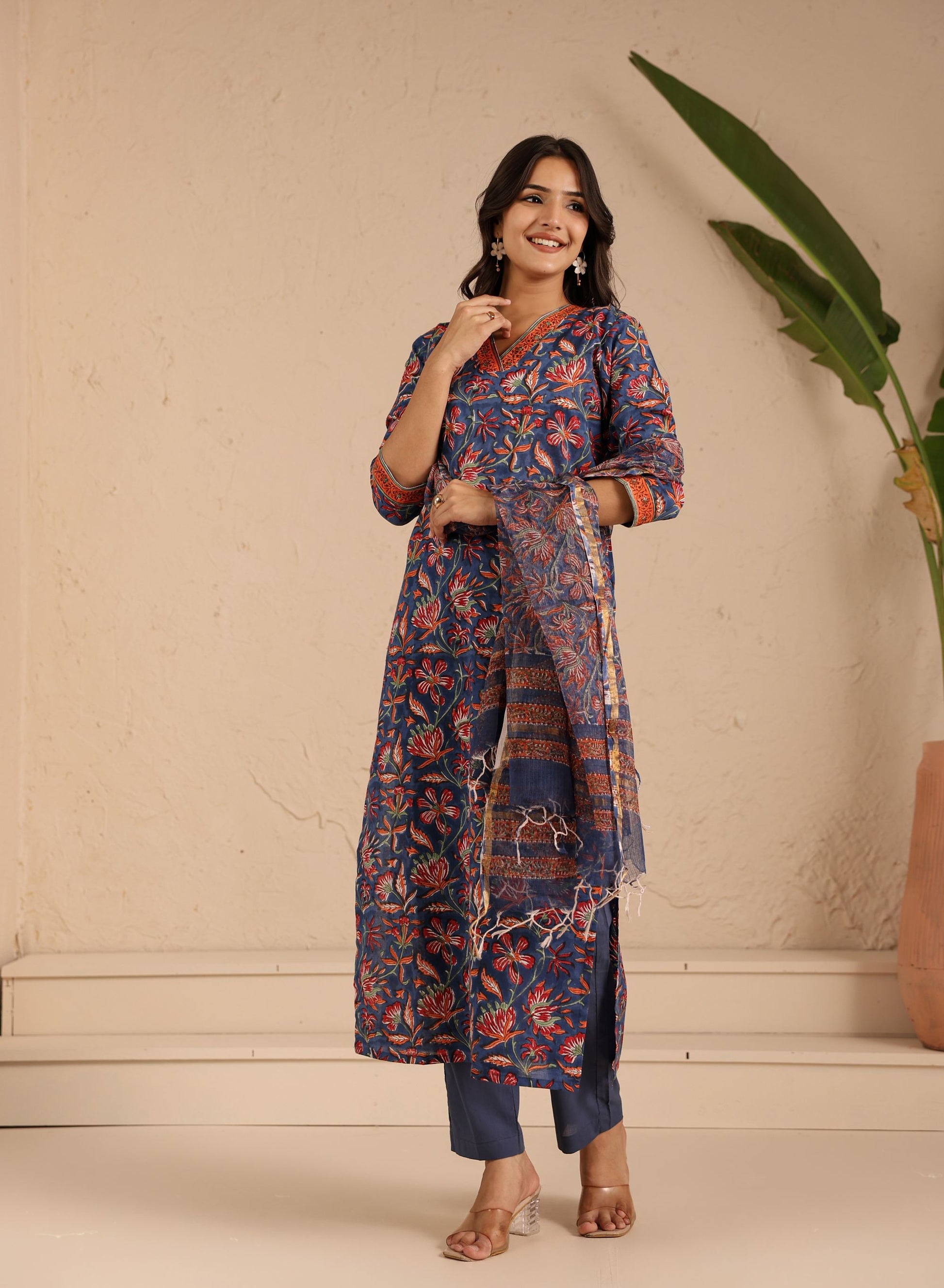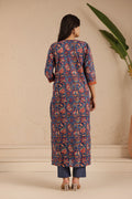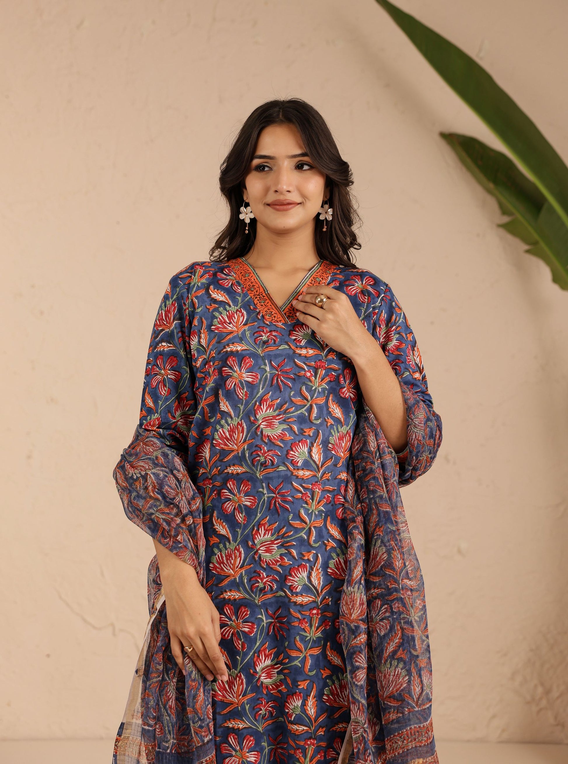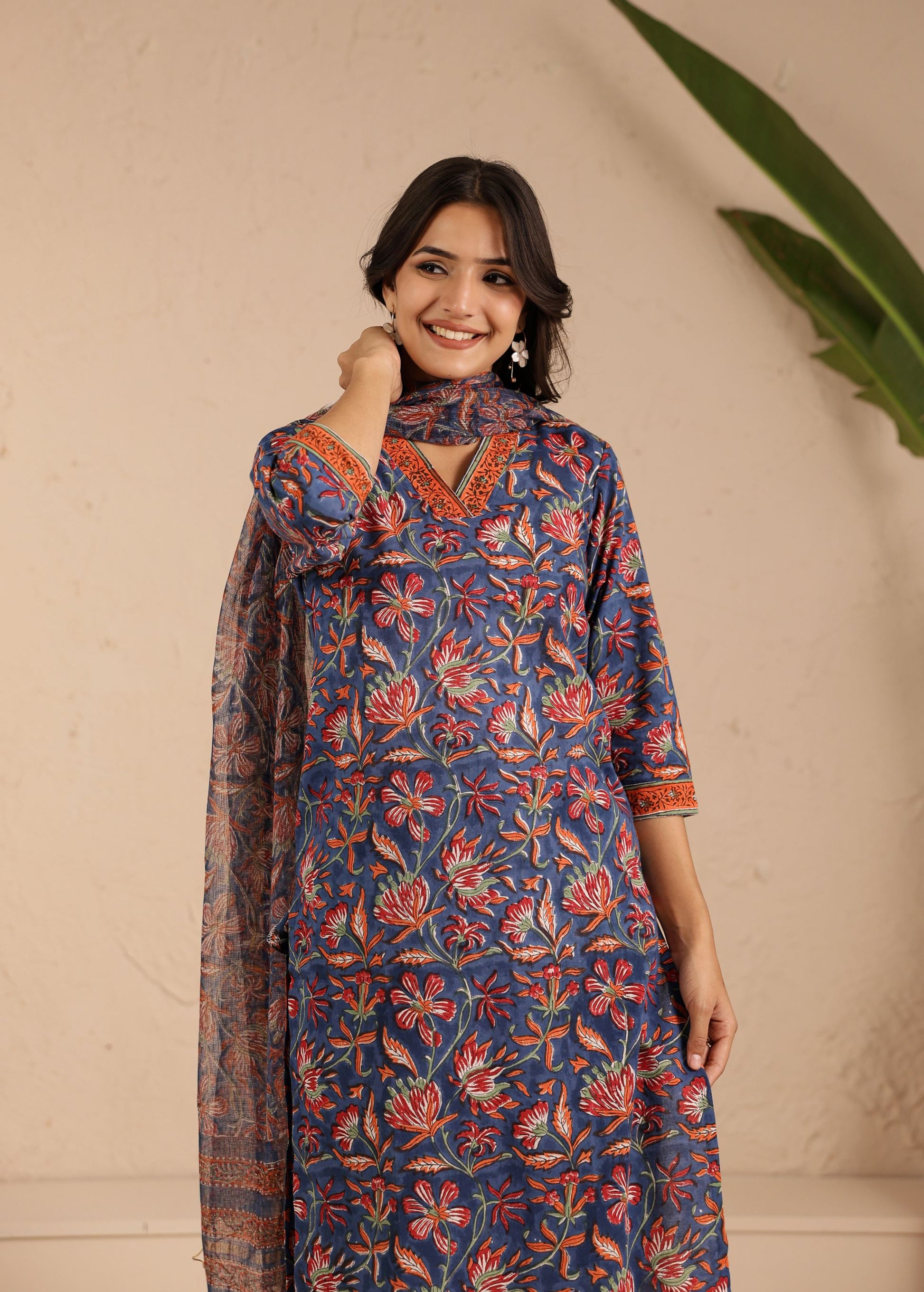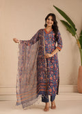 Navy Rust Blossom Kurta Dupatta Suit Set