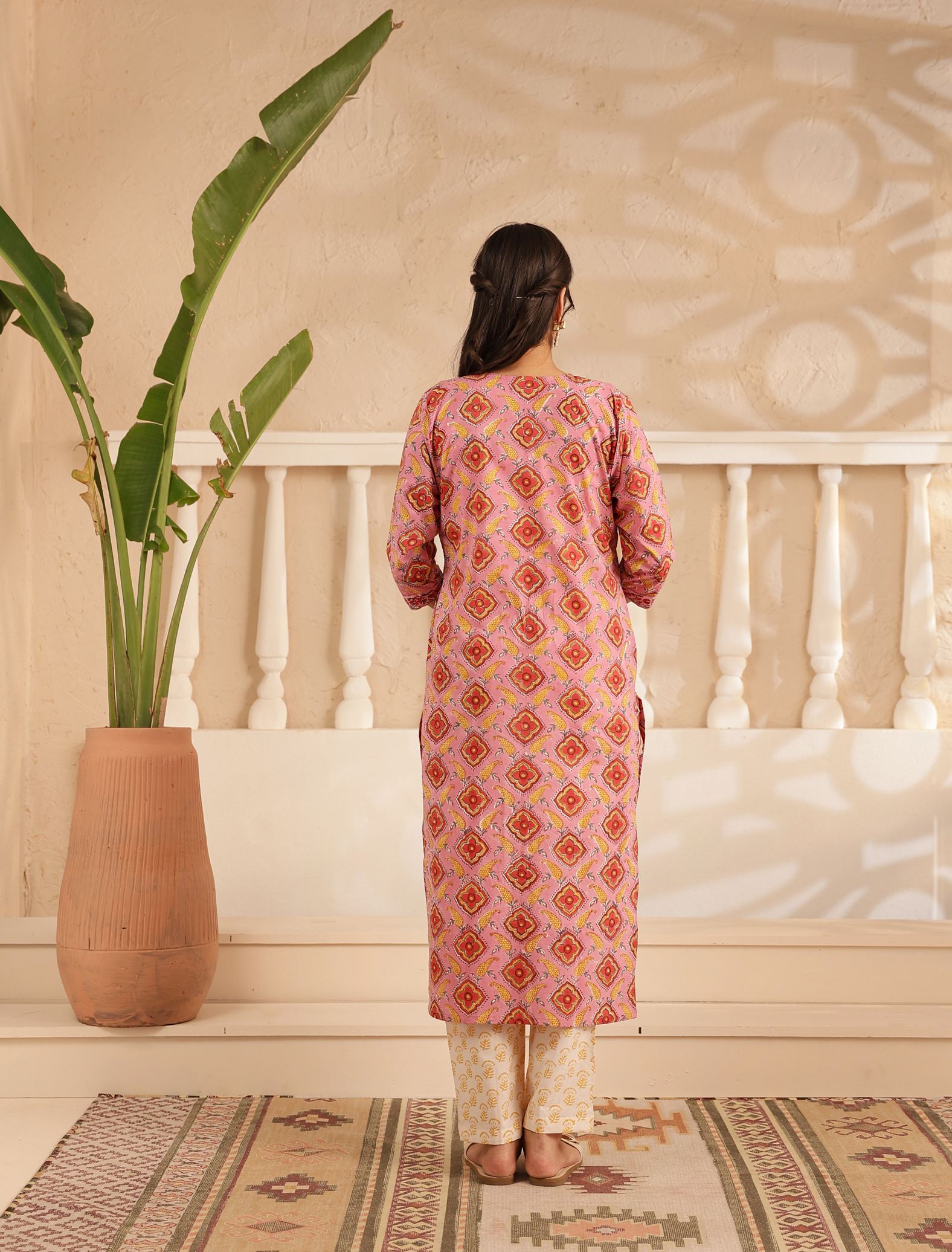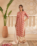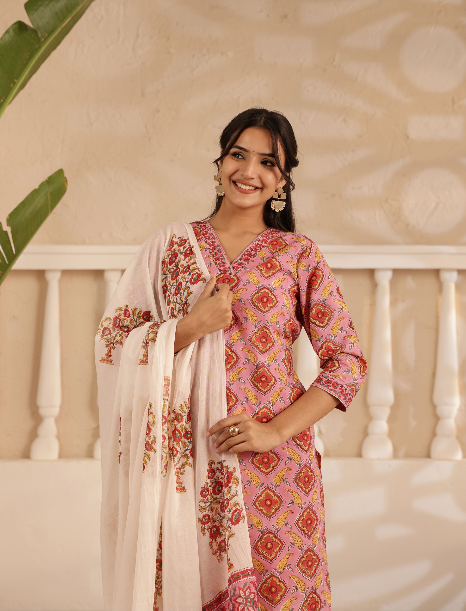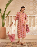 - Piece : 3 Piece Hand Printed Straight Kurta & Pant