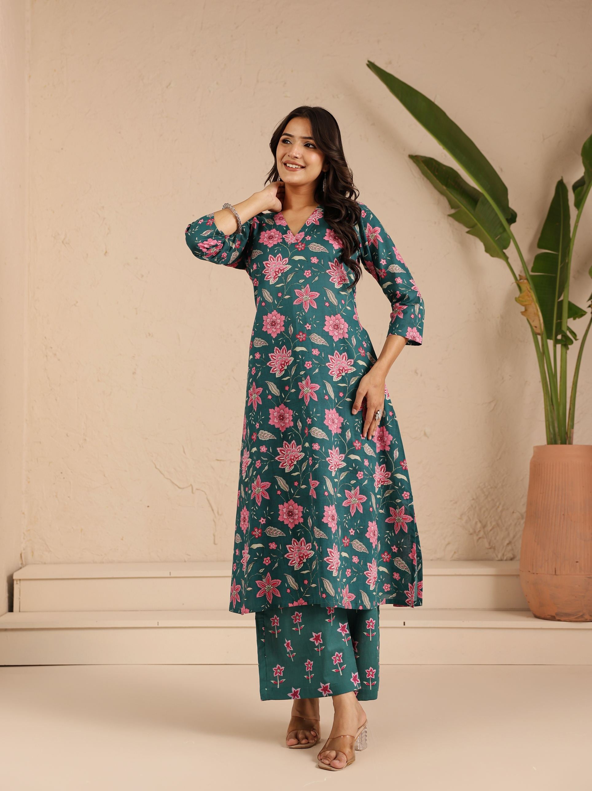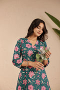 Teal Gulab Kurta Set