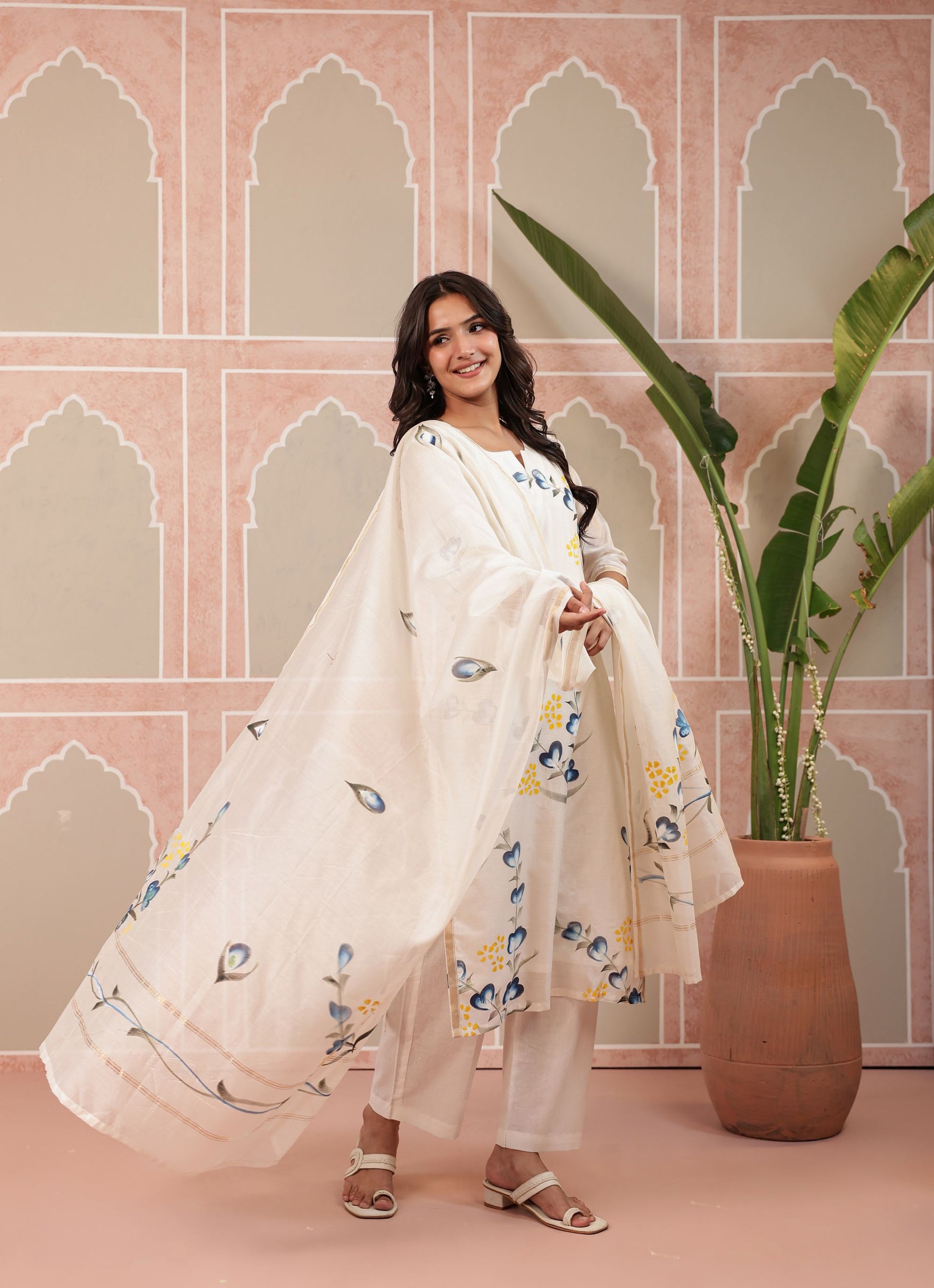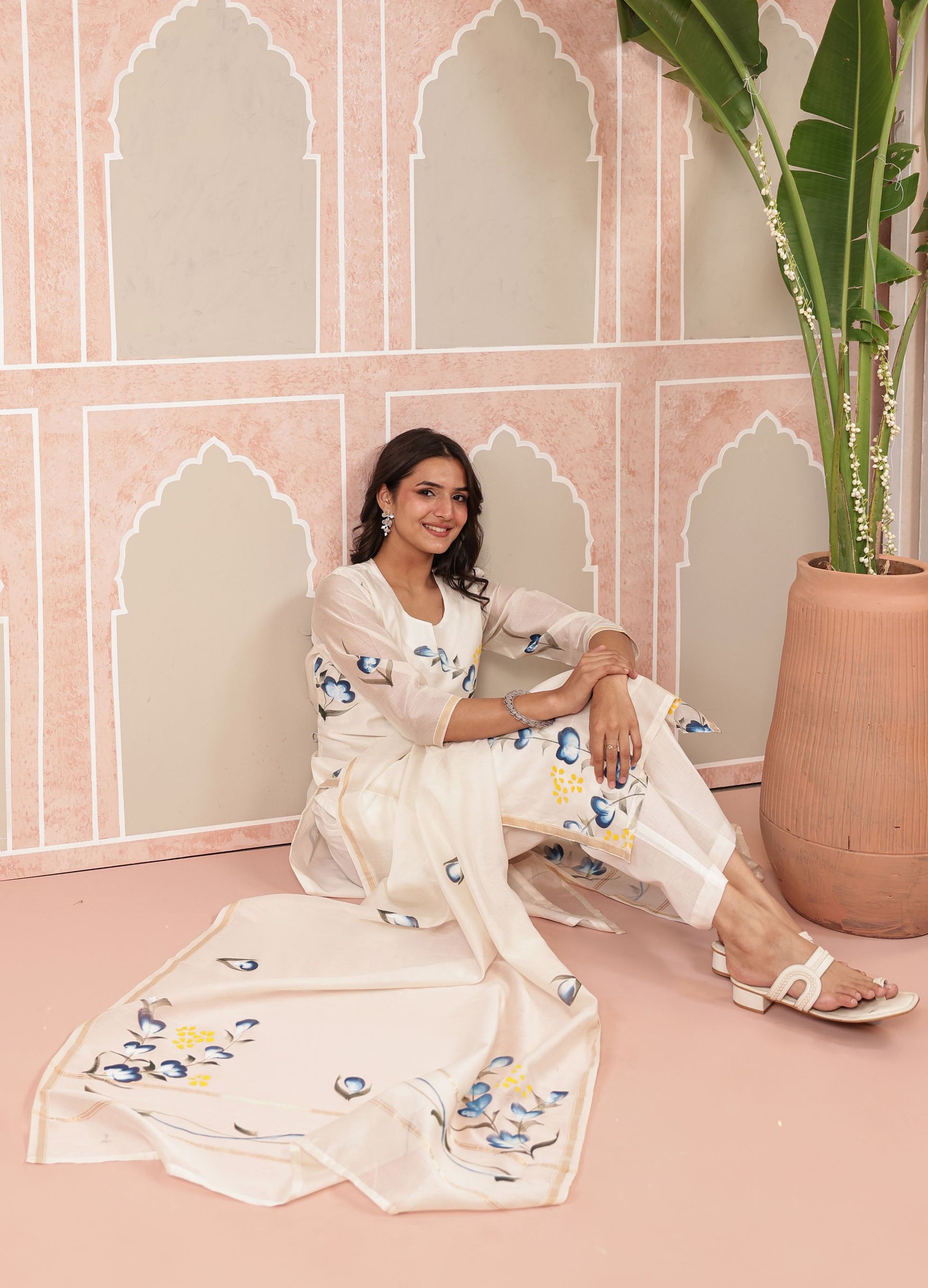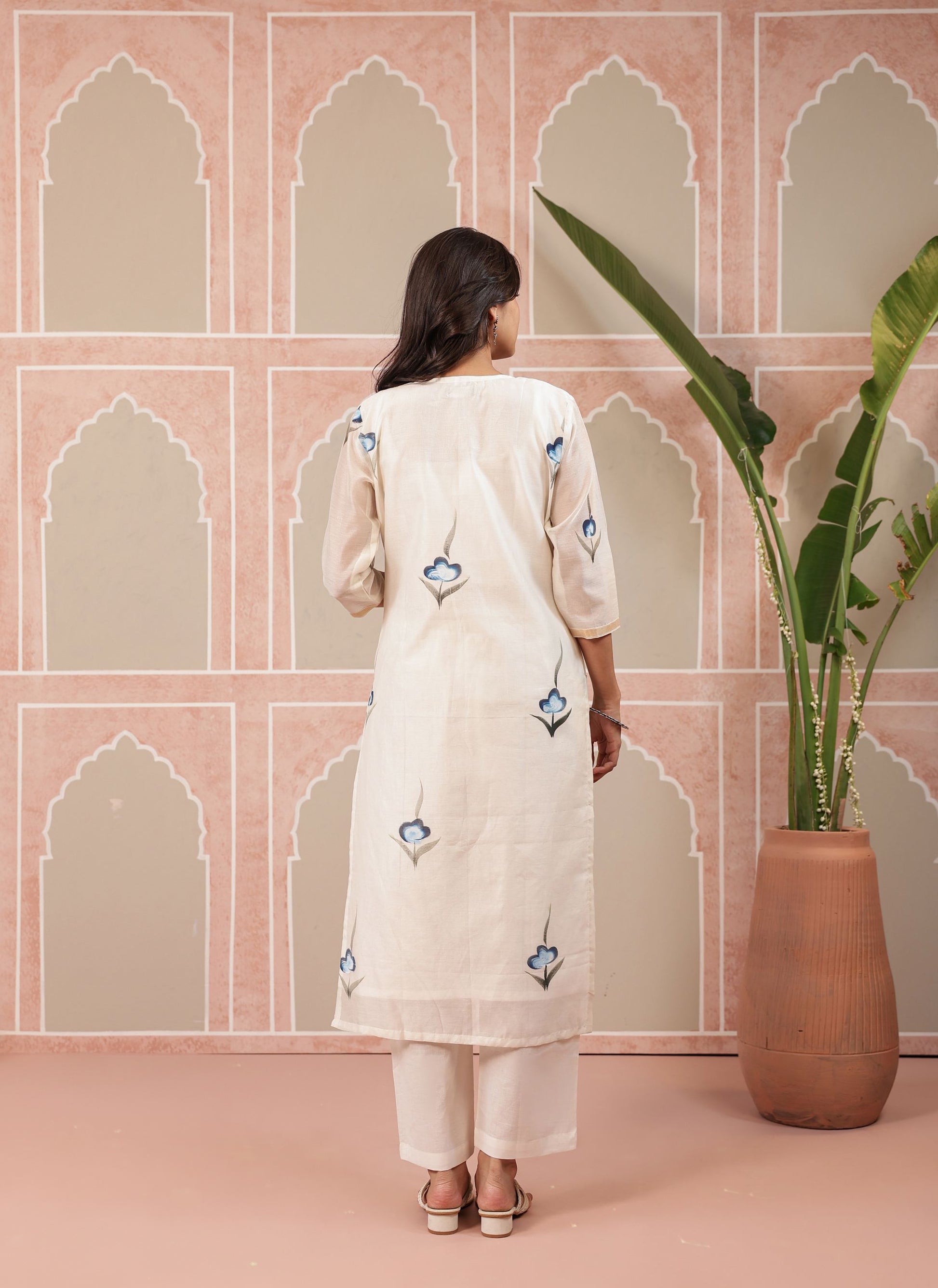 - Piece : 3 Piece Hand Printed Straight Kurta & Pant