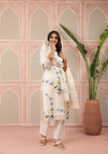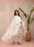 White Aqua Kurta Dupatta Silk Suit Set